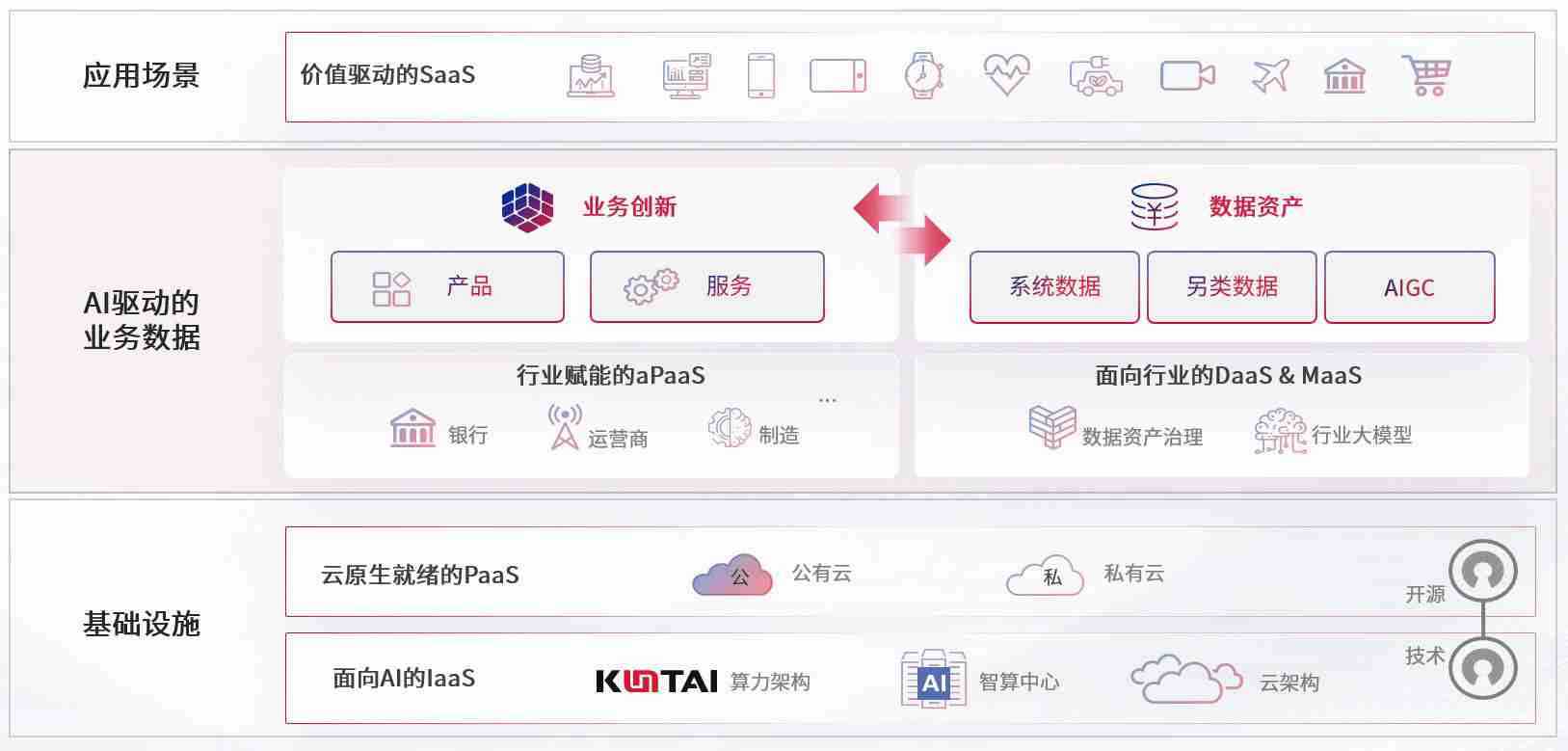 数字时代,,,,围绕企业数字化转型的关键要素,,Z6尊龙数码开创性的提出数云融合战略和技术体系框架,,着力在云原生、、、、数字原生、、、AI原生和信创产业上架构产品和服务能力,,,为处在不同数字化转型阶段的快消零售、、汽车、、金融、、、医疗、、政企、、教育、、、运营商等行业客户提供泛在的敏捷IT能力和融合的数据驱动能力,,构建跨界融合创新的数字业务场景和新业务模式,,助力企业级客户建立面向未来的核心能力和竞争优势,,全面推动社会的数字化、、智能化转型升级。。